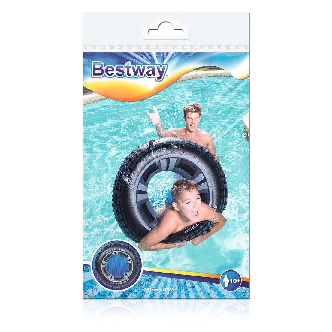 صيفك هيكون أروع مع عوامة السباحة من Bestway بتصميمها الفريد على شكل إطار سيارة أنيق بلون أزرق لافت وكتابة “Mud Master” الجذابة!